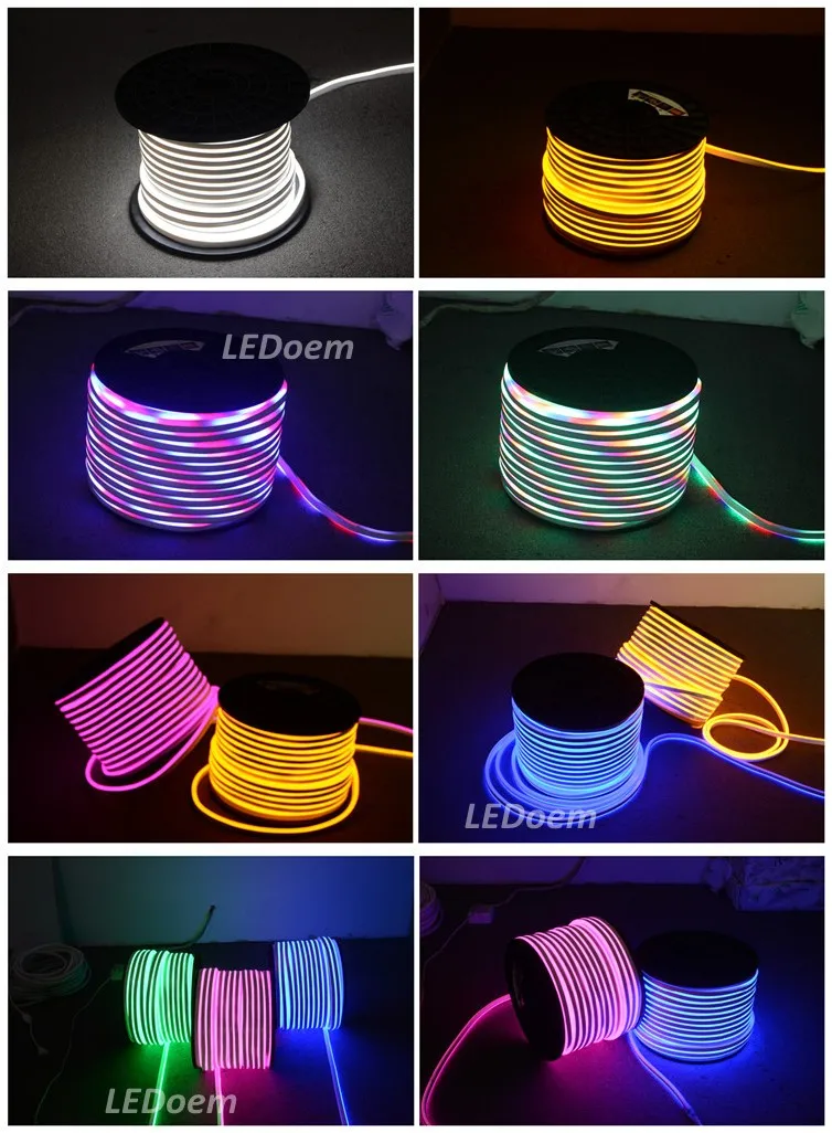 8 .For the High voltage (110-240V) LED Flexible strip light, 5050(RGB color is included) are available as well. They are much brighter than the 3528 strip light. Different speed and effect changes are achieved by unique controller